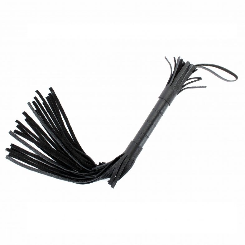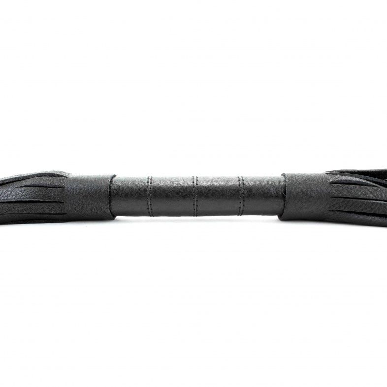 Аккуратная черная плетка, изготовленная из натуральной кожи. Имеет жесткую ручку, также покрытую кожей. Имеется петля для удобного использования плети. Длина ручки - 18 см. Длина хлыстов - 27 см.