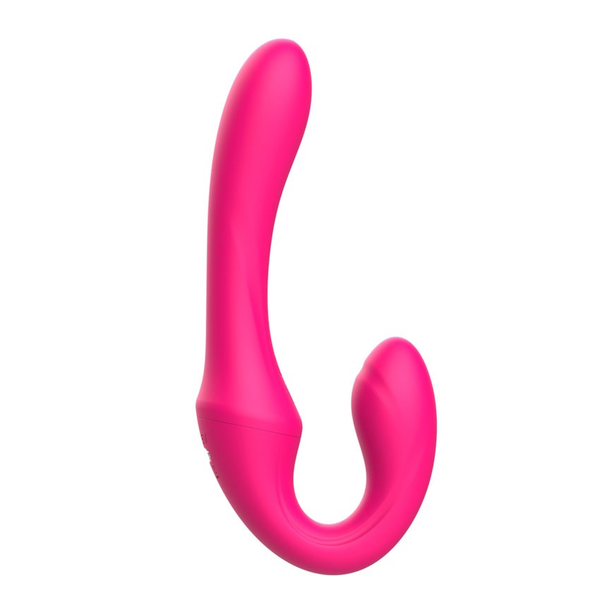 Розовый вибратор с клиторальным отростком и пультом ДУ. 7 режимов вибрации. Рабочая длина - 11,3 см.